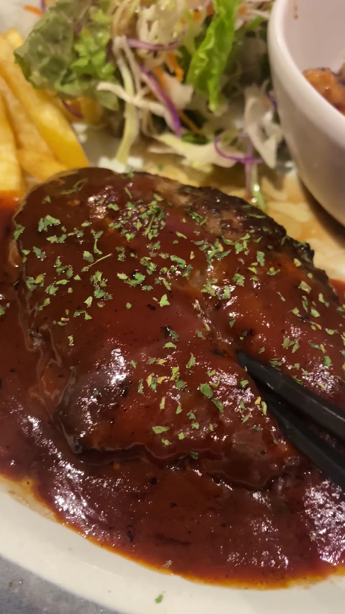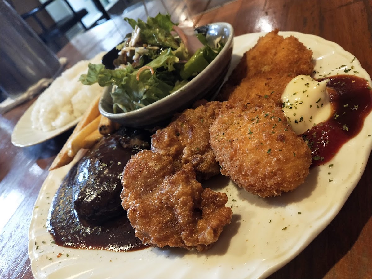 For those looking for something different, the ハンバーグ (hamburger steak) comes highly recommended. Diners have raved about its juiciness and how well it complements the rich demi-glace sauce. Each plate is generously portioned, ensuring that you won't leave hungry. Plus, add a ホットコーヒー for just 100 yen to enjoy the perfect end to your meal, with its smooth and approachable flavor making it the perfect digestif post-lunch.